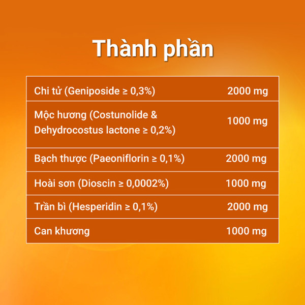 – Chi tử (Geniposide ≥ 0,3%): 2000mg