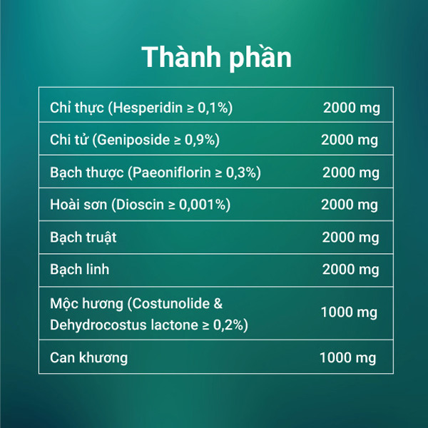 – Hoài sơn (Dioscin ≥ 0,0002%): 1000mg